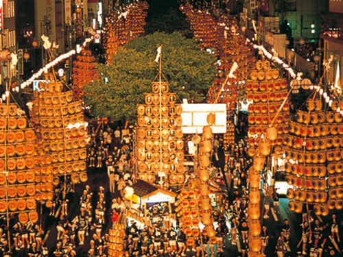 稲穂にみたてられた1万個の提灯がいっせいに夜空に揺れる様は圧巻です。