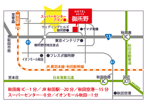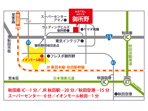 当ホテルから秋田南IC1分!!高速でいくと便利です!