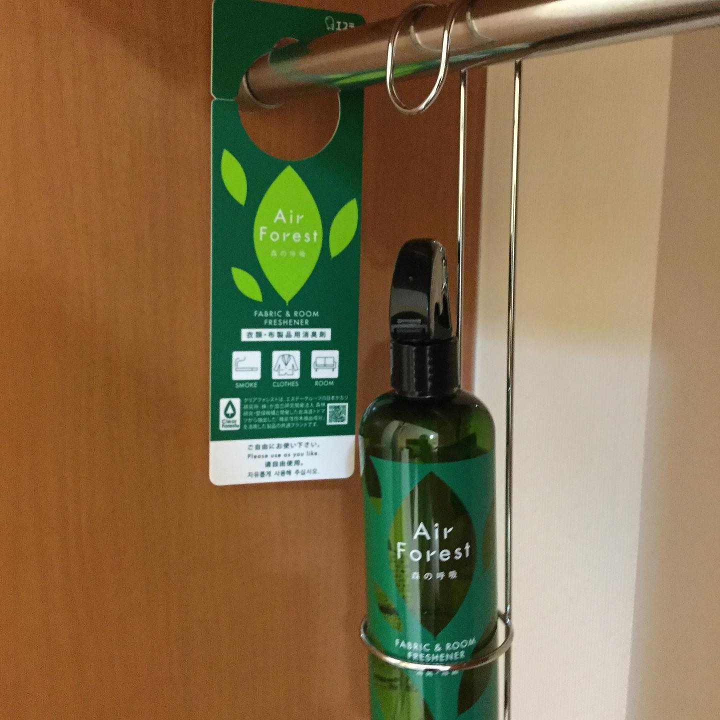 投稿日: 2020年7月4日2020年7月5日ホテル秋田御所野です。お部屋のクローゼットの中に衣類消臭剤をご用意してます。エステー様の「エアフォレスト森の呼吸」森の香りが自然の心地よさが特徴です。#秋田市ホテル #ビジネスホテル #御所野 #消臭剤 #衣類消臭剤 #森の呼吸 #エアフォレスト #AirForest