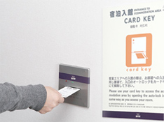 宿泊エリアへ入る際、ルームキーが必要です。宿泊者以外の入室を防ぎます。インターネット環境が無料